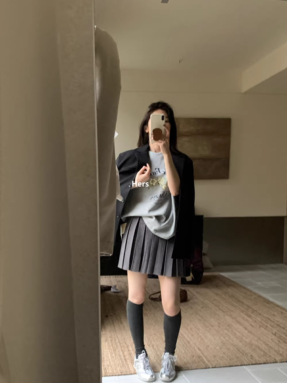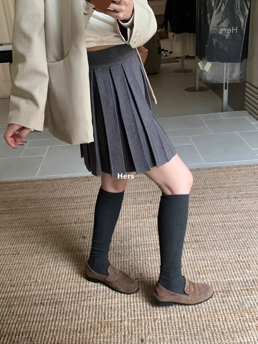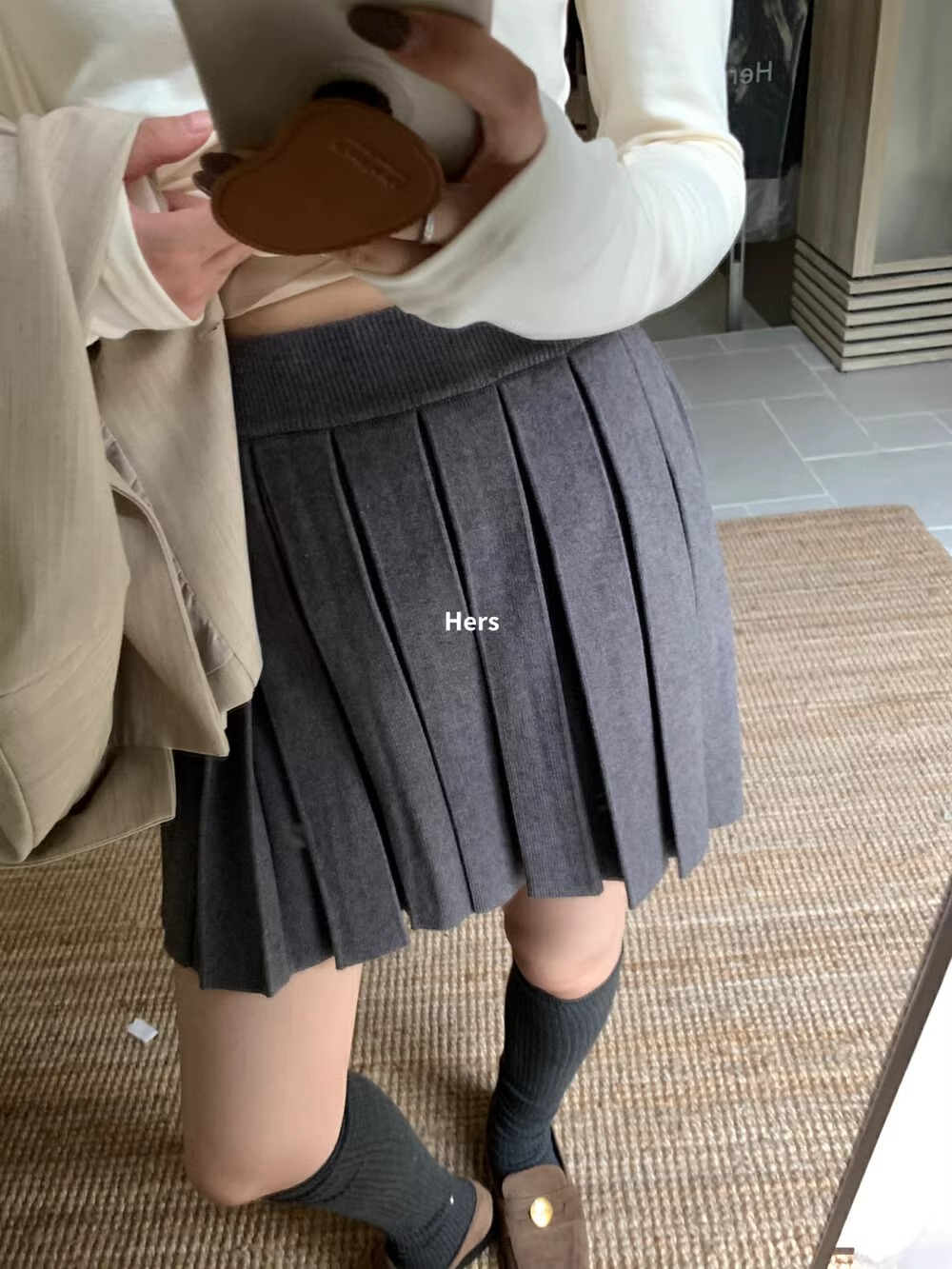 深灰色松紧腰百搭a字百褶裙女春秋季高腰显瘦高级感针织半身短裙상품정보 제공고시