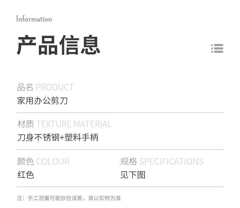 브랜드 기쁨 수입 여부 아니요 품목 번호 qq 목적 가정용 모양 부리 재료 스테인레스 스틸 원산지 이우 상자 수량 300 특허 출처 여부 아니요 색깔 빨간색 사양 빨간색 스테인리스 가위-대형-1쌍-19.5cm 주요 다운스트림 플랫폼 다른 주요 판매지역 다른 라이센스가 있는 개인 브랜드가 있습니다. 아니요 국경 간 수출 전용 공급 여부 예 스타일 현대적인 단순성 처리 및 맞춤화 예 제품 카테고리 사무실 가정용 가위 -