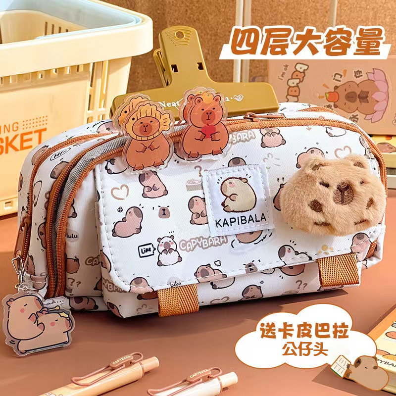 카피 발라 플립 연필 케이스 만화 귀여운 고가의 3 층 문구 상자 초등 및 중등 학교 학생을위한 대용량 연필 케이스