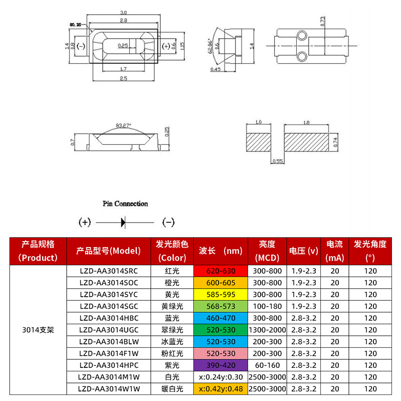 원산지 / 수입 여부 아니요 품목 번호 주문 3014 브랜드 롱 지디 품목 번호 3014 퓨어 화이트 0.1W 모델 LZD-AA3014ZW 치수 3.0*1.4*0.7MM 힘 0.06 연색성 지수 70 순방향 전압 3.0-3.2 역전압 5 정전기 고장 전압(ESD) 2000 정격 전류 0.02 칩 브랜드 산안 칩 크기 9*12 형광체 브랜드 / 접착제 브랜드 고객 서비스에 문의 와이어 재질 금실 브래킷 재질 구리 브래킷 조명 각도 120 발광 효율 、 색상 허용 오차 、 열저항 、 최대 허용 접합 온도 、 전압 온도 계수 、 1000시간 정기 노화 98 6000시간 정기 노화 96 LM-80 테스트를 통과하는지 여부 아니요 색온도 범위 、 관련 색온도 쿨 화이트(12000-15000K) 주요 다운스트림 플랫폼 아마존 주요 판매지역 북미 라이센스가 있는 개인 브랜드가 있습니다. 아니요 국경 간 수출 전용 공급 여부 예 -