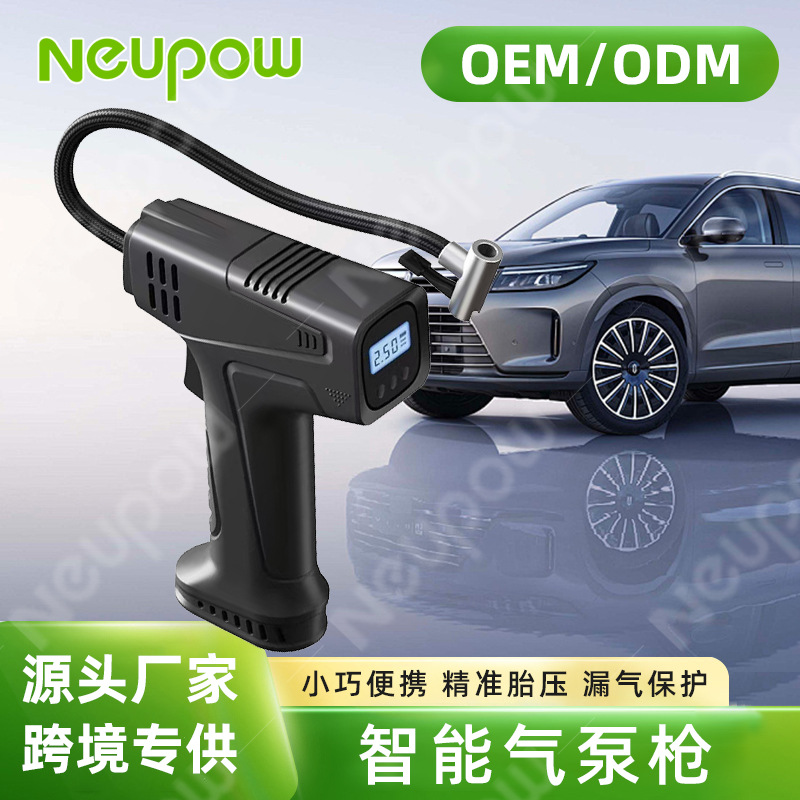 1. 枪型手持式充气泵,19缸,充气管连在枪上,方便收纳及操作。
