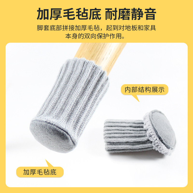 더블 레이어 니트 두꺼운 스티칭 라운드 하단 미끄럼 방지 테이블 의자 발 커버 의자 다리 보호 발 커버 4 in/set 가격