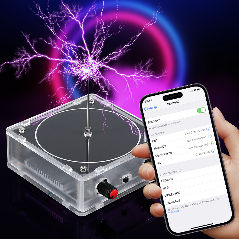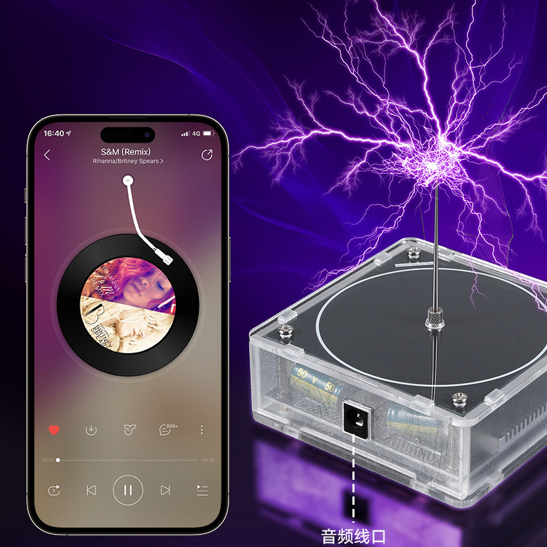 국경 간 폭발 음악 테슬라 코일 뮤직 박스 인공 번개 터치 가능한 오디오 입력 블루투스 과학적 실제