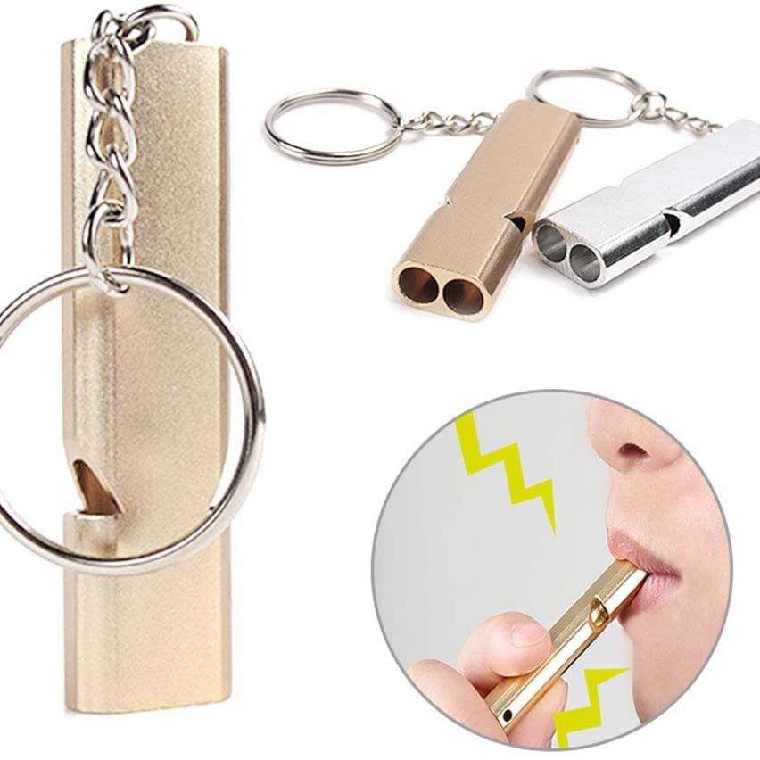 特点:小巧方便易携带,内腔无滚珠设计,进水也能使用;采用铝合金材质、双腔设计,分贝高,传播远,是户外求生、火灾地震等遇险求救、训练之用的好工具。