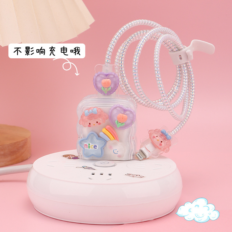 국경 간 대외 무역 뜨거운 만화 20W 부드러운 고무 데이터 케이블 보호 세트 애플 충전기 보호 쉘