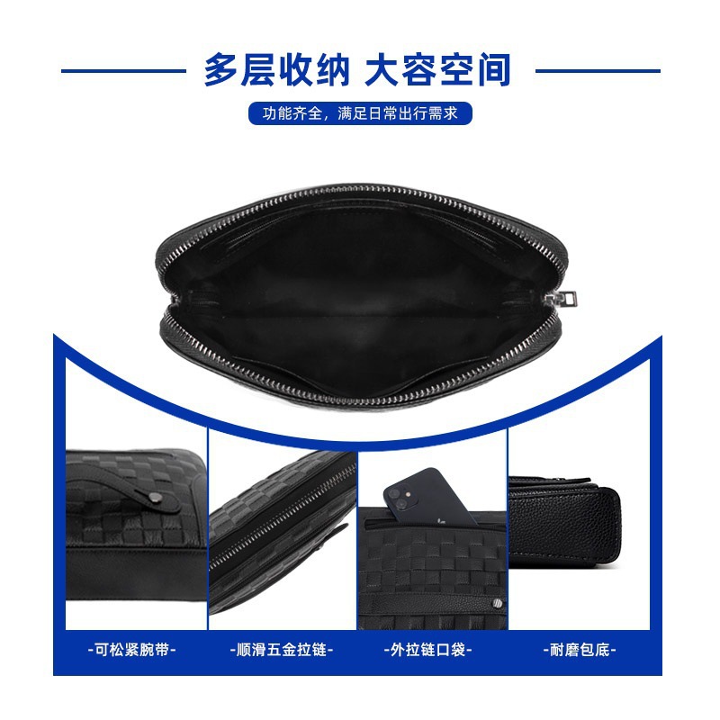 스타일 비즈니스 통근 품목 번호 V2413 작은 격자 무늬 재료 가죽 피질 특성 첫 번째 레이어 소가죽 기능 절단 방지 무늬 양각 인기 요소 자물쇠 안감 질감 나일론 색상 검은색 라이센스가 부여된 개인 상표가 있습니다. 예 출시 연도 및 시즌 2025년 봄 적용 가능한 시나리오 비즈니스 여행 컴퓨터 크기 수용 8inch 적용 가능한 성별 남성 제품 카테고리 남성용 클러치 백 -