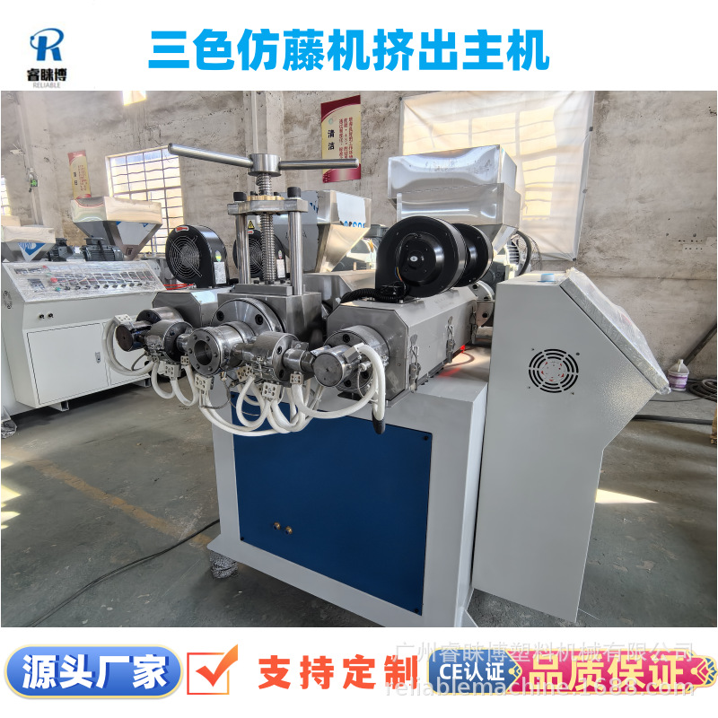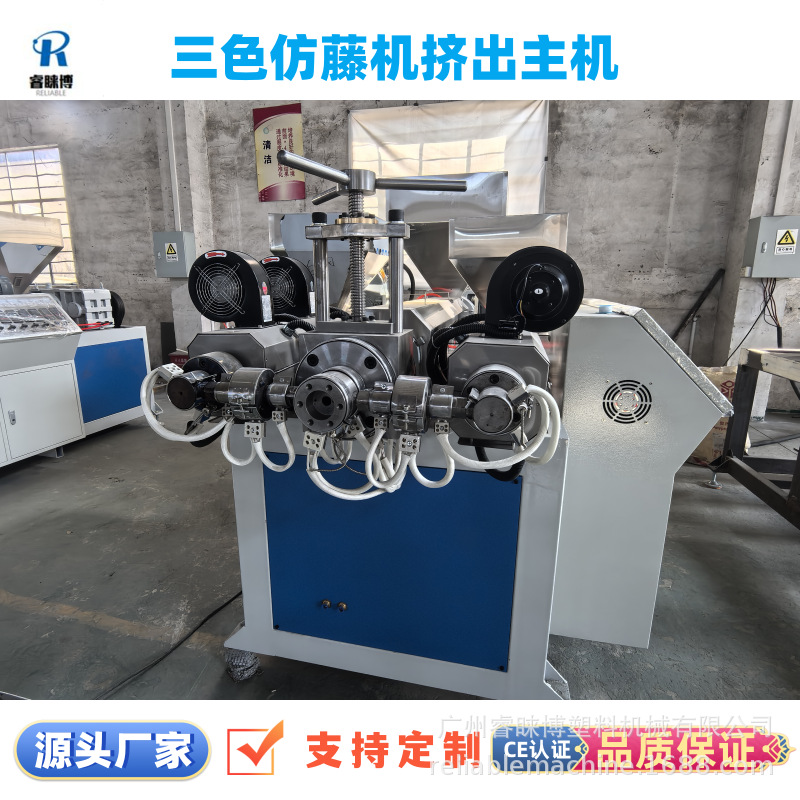 机器特点:新型塑料仿藤机分为五色,四色,三色,双色,单色仿藤机。