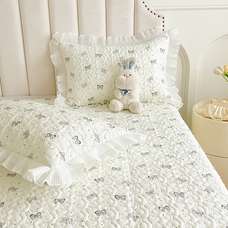 한국 스타일 면화 침대 시트 면 레이스 침대 커버 3 조각 세트 공주 스타일 침대 스커트 보호 커버 다다미 담요
