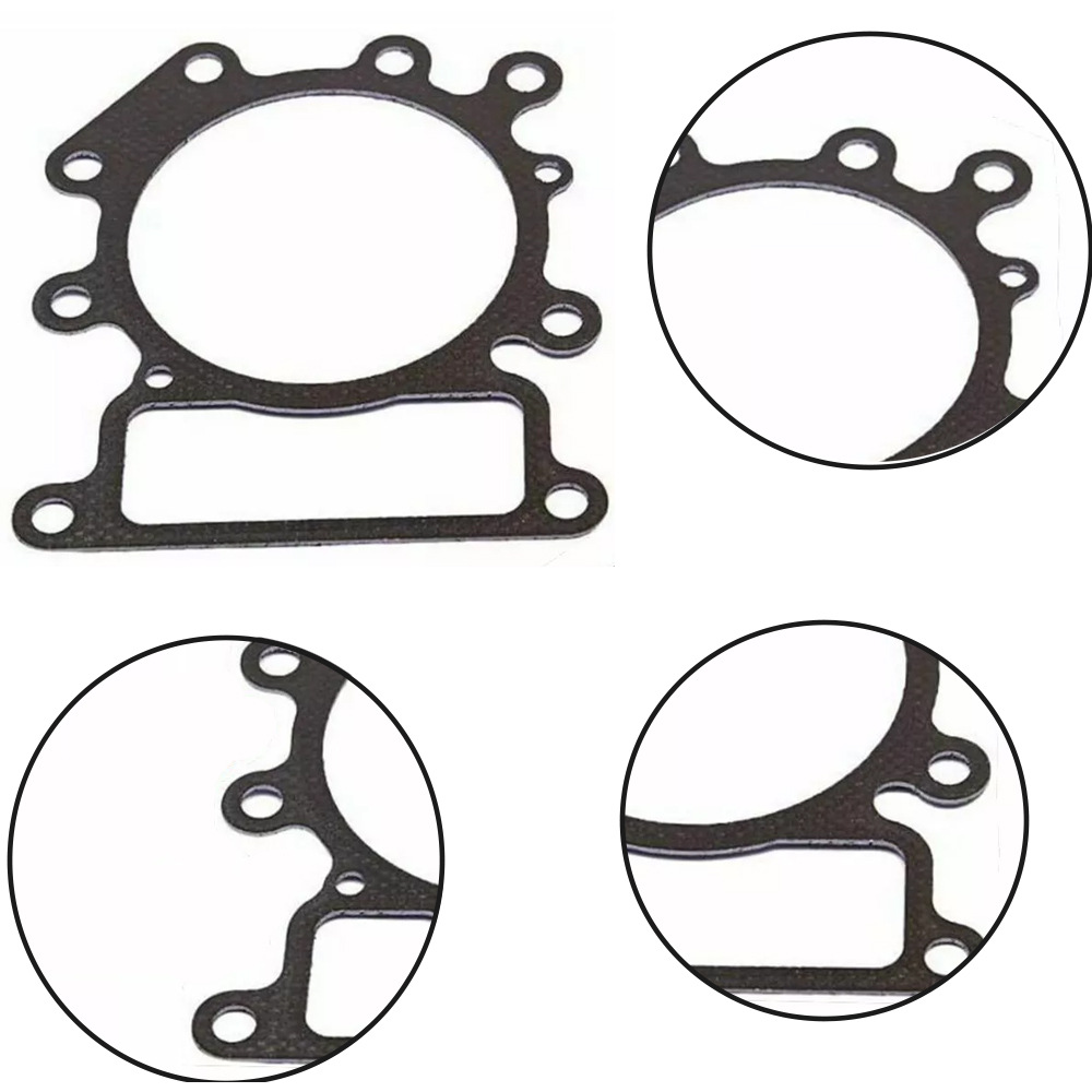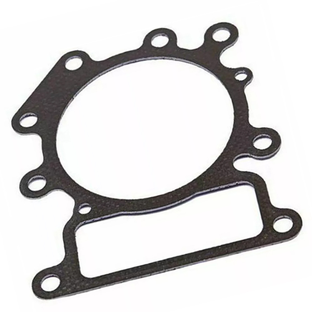 Check your engine manual for the correct model number to reference gasket part numbers. Remove the old gasket and with a razor blade remove all debris and remaining gasket particles. Align the new gasket and re-assemble.