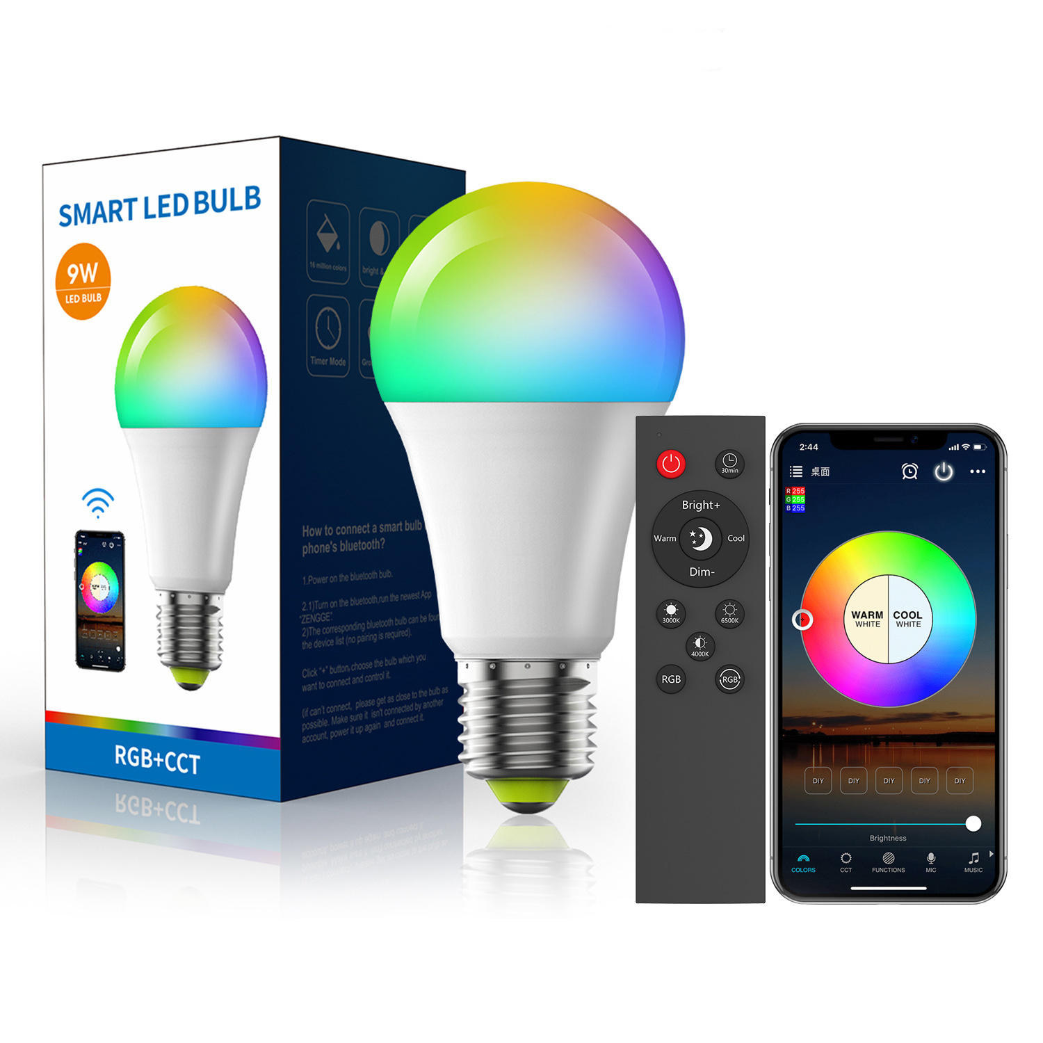 纯蓝牙+2.4G灯泡(ZENGGE APP)功能介绍: