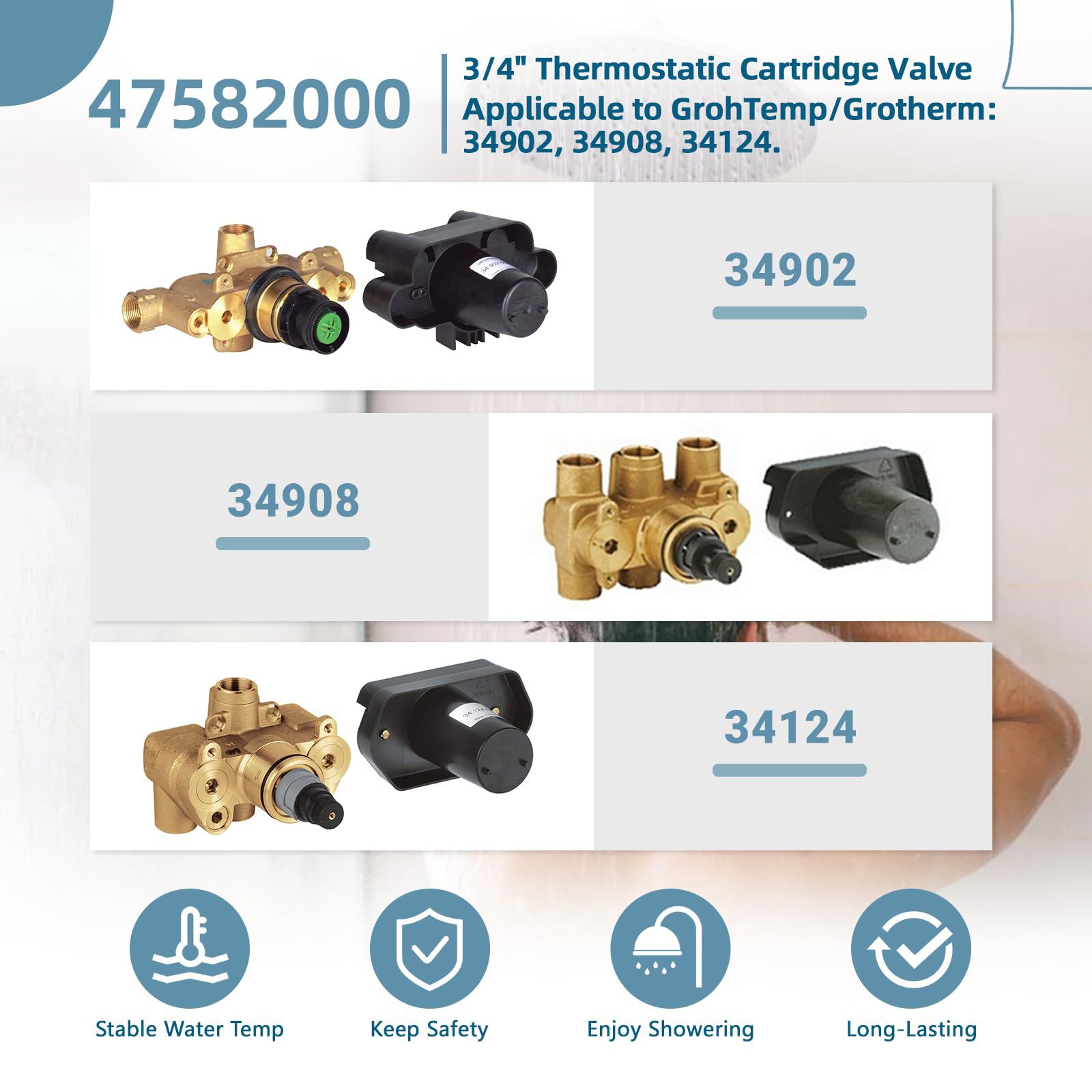 Amazon 베스트셀러 Grohe 온도 조절 밸브 47582000 황동 온도 조절 샤워 교체 정확한 온도 컨트롤러