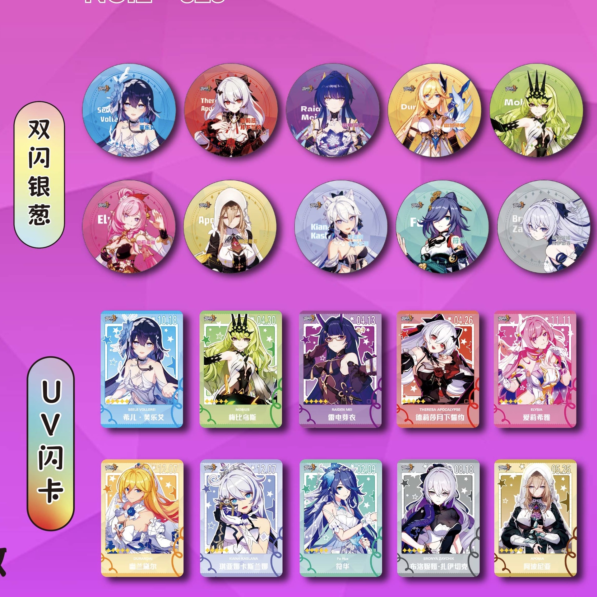 备注:双闪银葱吧唧,同款闪卡,内含套壳,每款端盒内含10+1个盲袋