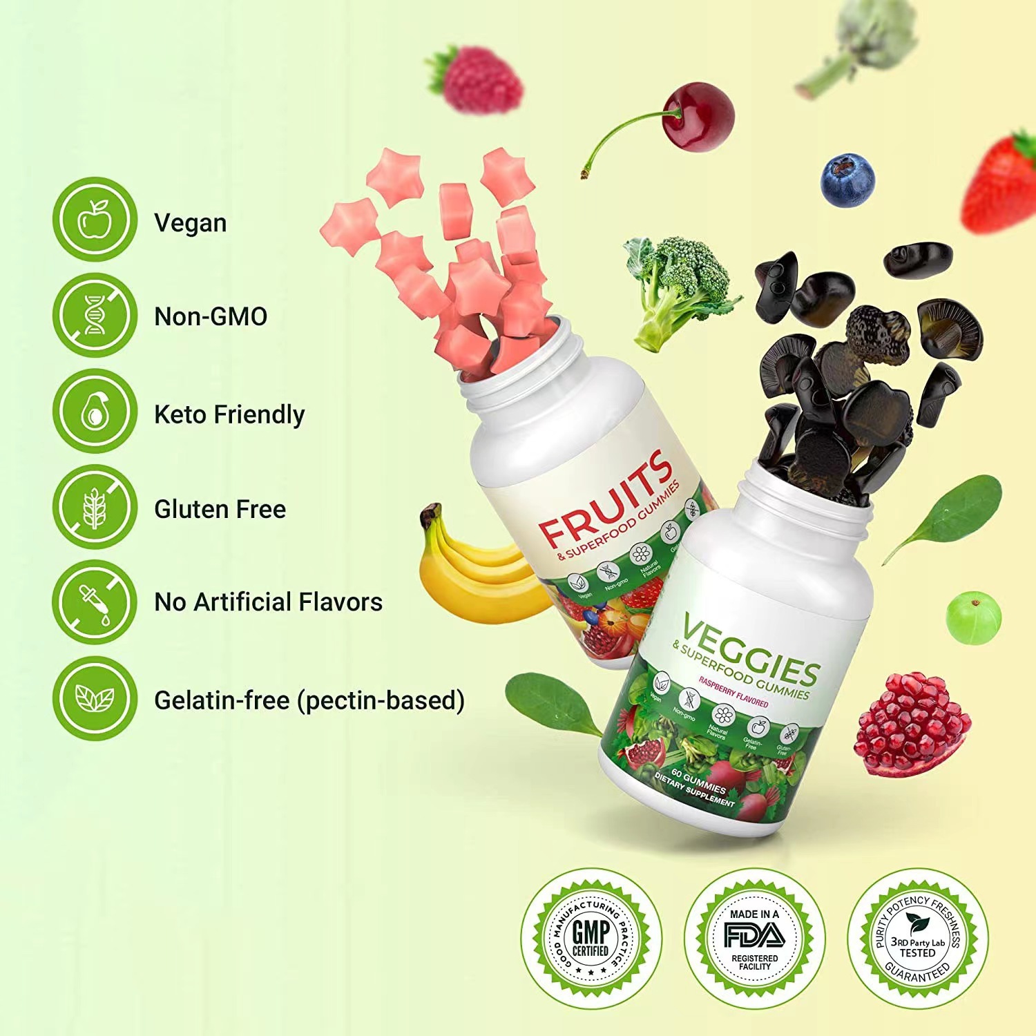 국경을 넘나드는 인기 과일 및 야채 구미 다양한 모양과 맛을 맞춤 설정할 수 있습니다.