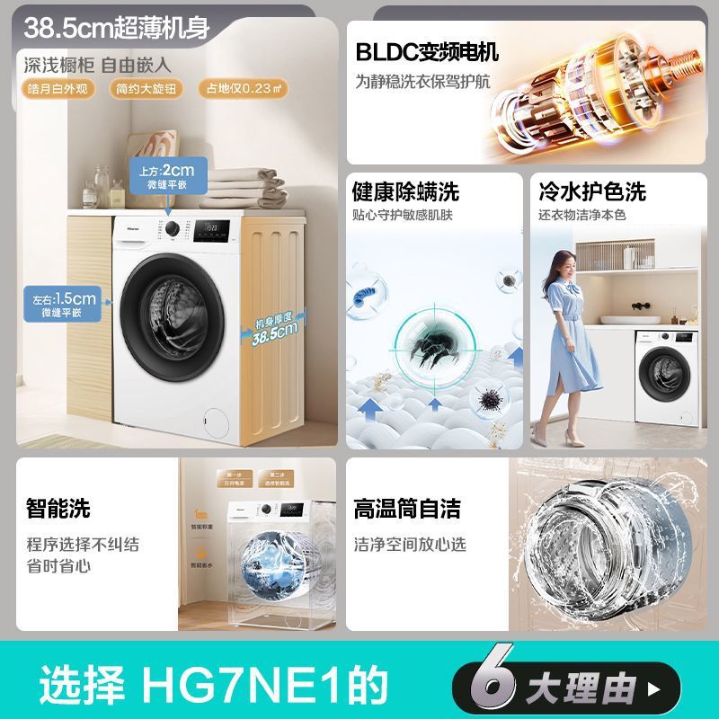 Hisense 7kg 가변 주파수 드럼 세탁기 가정용 대용량 완전 자동 에너지 절약형 세탁기