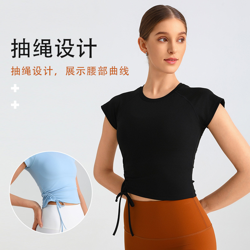 여성용 요가복, 봄 여름 인터넷 연예인 핫 스타일 드로스트링 피트니스 탑, 전문 러닝 피트니스 필라테스 트레이닝복