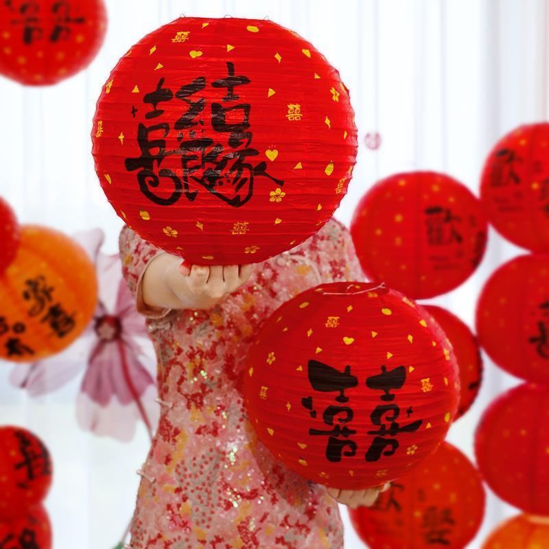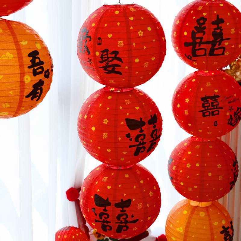 웨딩 중국 스타일 빨간 랜턴 장식품 웨딩 룸 레이아웃 벌집 공 행복한 단어 장식 웨딩 트리 교수형 신부 사진 소품