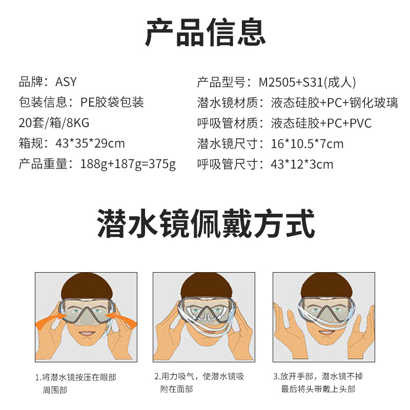 제품 카테고리 다이빙 고글 상표 ASY 재료 액상실리콘+PC+강화유리+PVC 품목 번호 M2505+S31-250424 원산지 동관 맞춤형 처리 아니요 색상 화이트/성인용 다이빙 고글 + 스노클 주요 다운스트림 플랫폼 다른 라이센스가 부여된 개인 상표가 있습니다. 예 국경 간 수출을 위한 독점 공급원인지 여부 예 특허 유형 없음 대외 무역 수출 인증 SGS 품질검사 신고번호 다른 크기 성인용 프리 사이즈 -