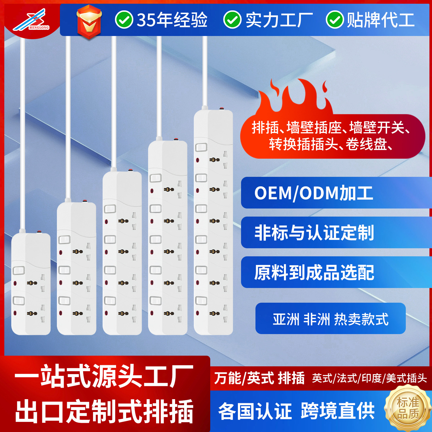 型号:中东非洲热销插排独立开关插排多插位多功能插线板多功能外贸排插