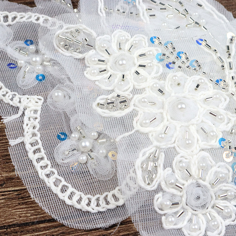 인기있는 흰색 꽃 구슬 반짝이 다이아몬드 스팽글 수리 메쉬 스커트 diy 가방 의류 장식 구멍 패치 스티커