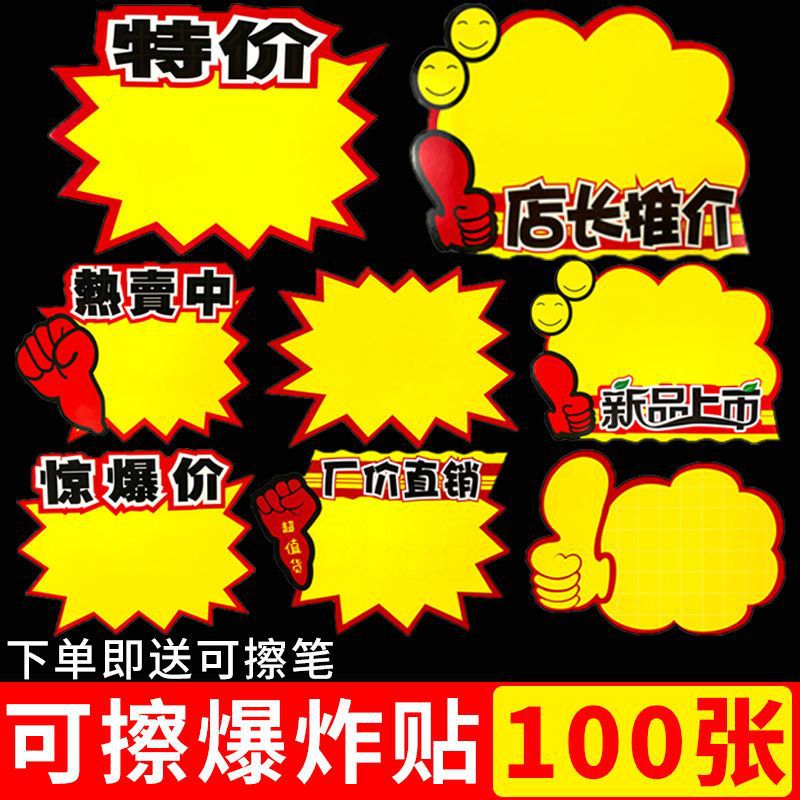폭발 스티커 대형 빈 양면 지울 수있는 광고 용지 새로운 창조적 인 두꺼운 가격표 특별 가격 라벨