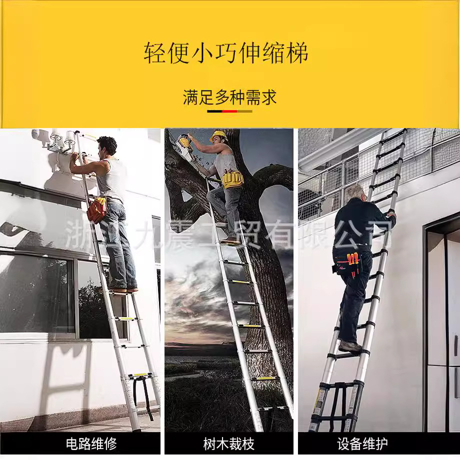=伸缩梯特点及使用方法=【伸缩梯特点】:设计合理、造型美观、不锈不腐、坚固耐用。使用安全方便,不用时可完全折叠节省空间,产品美观大方手工精细 居家良品方便实用.结实美观.占地空间小。伸缩折叠后可随意存放。也可以放在车后备箱携带非常方便哦。梯子可随意伸缩长度,使用灵活,品质保证