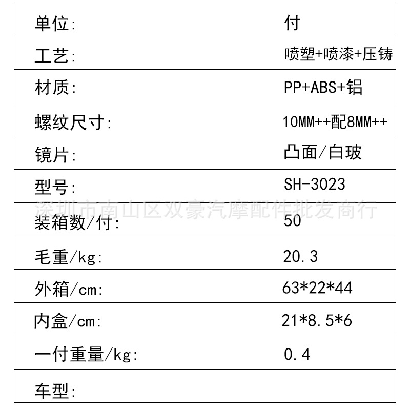 유형 알루미늄 합금 극 모델 SH-3023-QX 거울 종류 볼록거울 외관 크기 그림과 같이 전원 전압 - 커버 재질 PP+ABS+알루미늄 거울 재질 PP+ABS+알루미늄 거울 커버 재질 PP+ABS+알루미늄 원산지 중국 부품 번호 SH-3023-QX 적용 모델 Wisp, Qiaoge 등 일반 지원 관계 적용 가능 품목 번호 SH-3023-QX 상표 다른 색상 빨간색 주요 다운스트림 플랫폼 다른 주요 판매지역 다른 라이센스가 부여된 개인 상표가 있습니다. 아니요 국경 간 수출을 위한 독점 공급원인지 여부 예 -