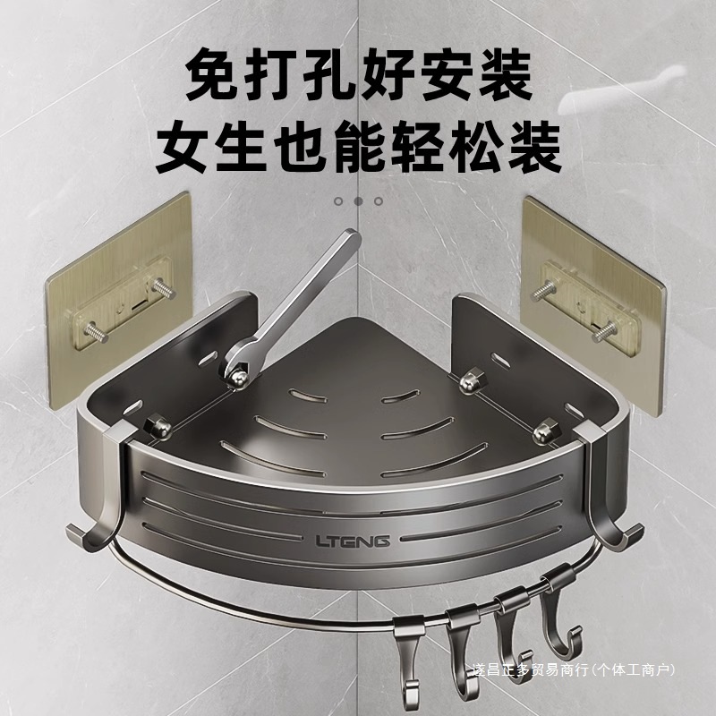 건 그레이 펀치 프리 스페이스 알루미늄 욕실 선반 욕실 삼각형 바구니 벽걸이 욕실 코너 수납 선반