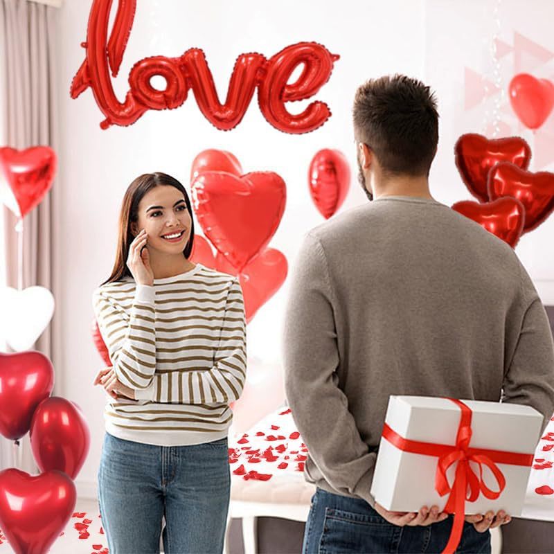 浪漫装饰套装:包括“爱”气球+ 1000朵玫瑰花瓣+ 10个18英寸心形箔气球+ 40个12英寸红色心形气球+ 2条红丝带。浪漫的情人节套装提供一切你需要让你的特殊的一天难忘。