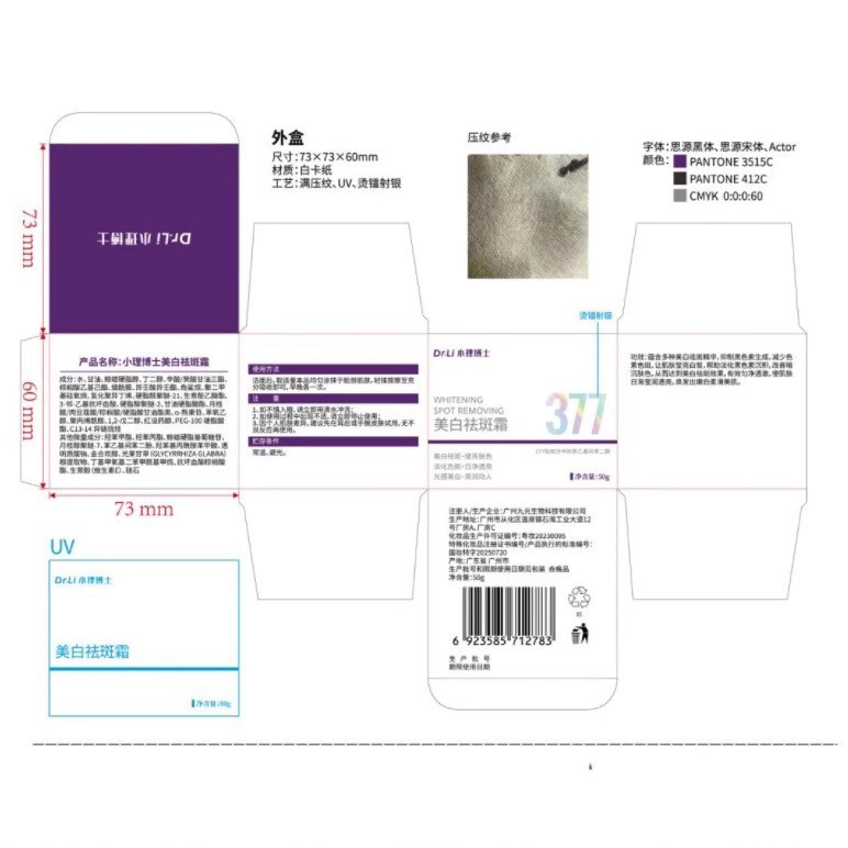 상표 샤오리 박사 수입할지 말지 아니요 브랜드 유형 국내 브랜드 제품 이름 닥터 샤오리 377 미백 주근깨 크림 적용 가능한 사람들 일반 적용 가능한 피부 타입 일반 품목 번호 XLBS377QBS(50g) 사양 일반 사양 원산지 광저우 유통기한 3 년 순 내용 50g 국경 간 수출을 위한 독점 공급원이 있습니까? 아니요 화장품 효과 미백 제품 사양 닥터샤오리 377 미백주근깨 크림 50g 특수용도 화장품 예 특수용도화장품 인증번호 국민화장 특수문자 20250720 특수 메이크업 제품명 닥터 샤오리 377 미백 주근깨 크림 카테고리 크림 -