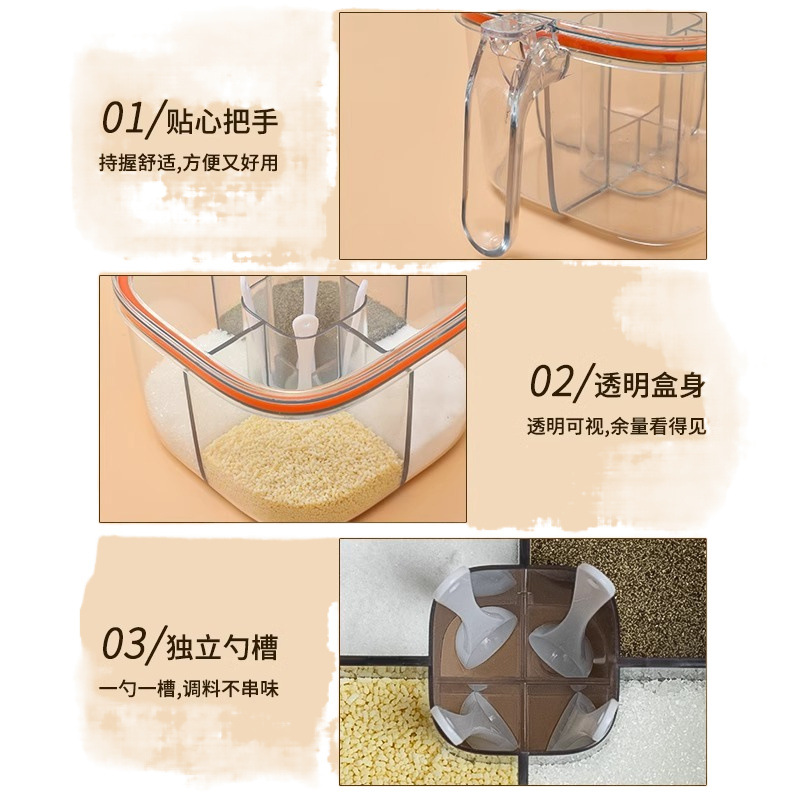 ∝조미료 상자 일체형 멀티 그리드 가정용 주방 조합 세트 멀티 그리드 MSG 보관 후추 조미료