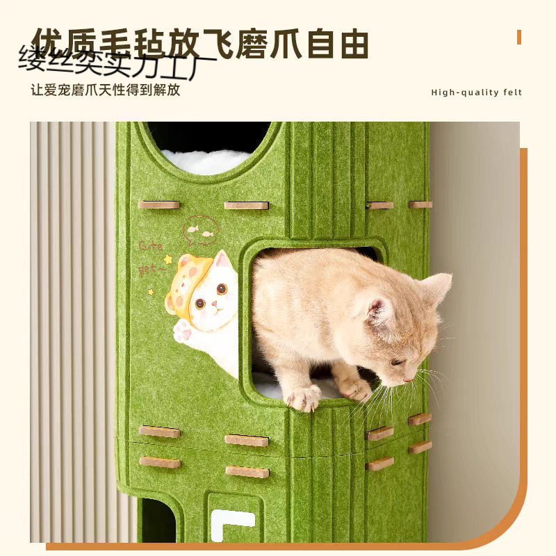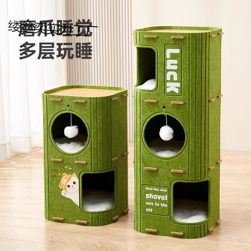 다층 고양이 둥지와 고양이 클라이밍 프레임이 하나로 통합되어 겨울에 따뜻하게 유지되는 고양이 나무 구멍 이중층 피난처 집 여러 마리의 고양이가 있는 가족 겨울 고양이 집