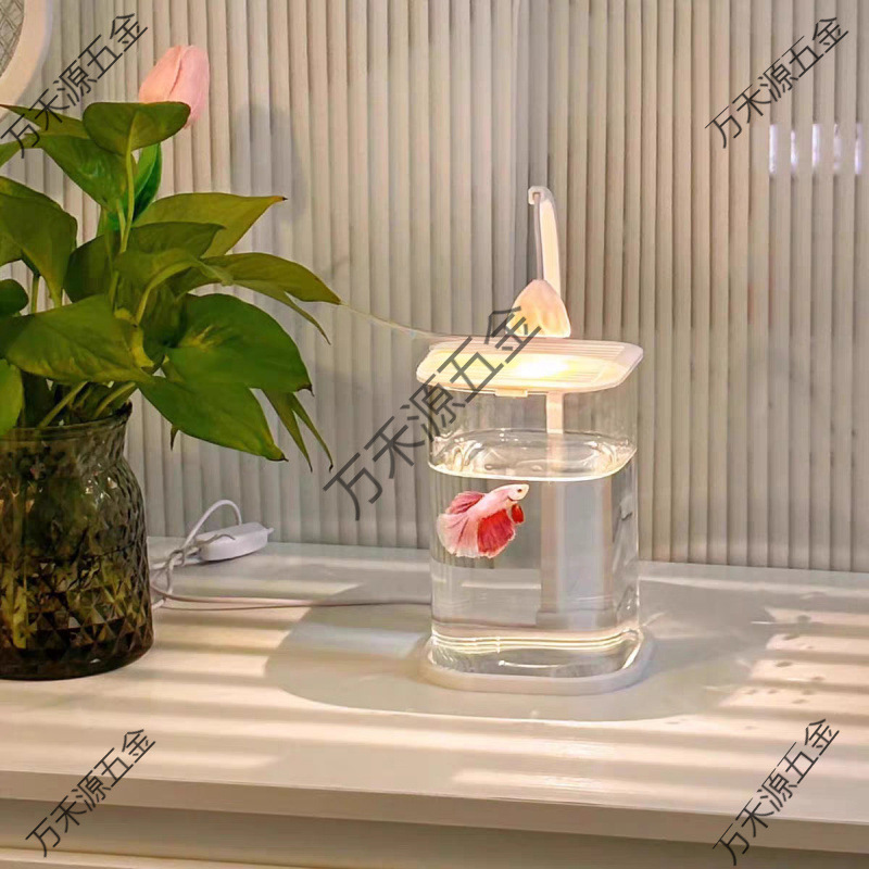 鱼缸斗鱼专用超白小型懒人玻璃缸客厅创意桌面摆件高级感观赏灯