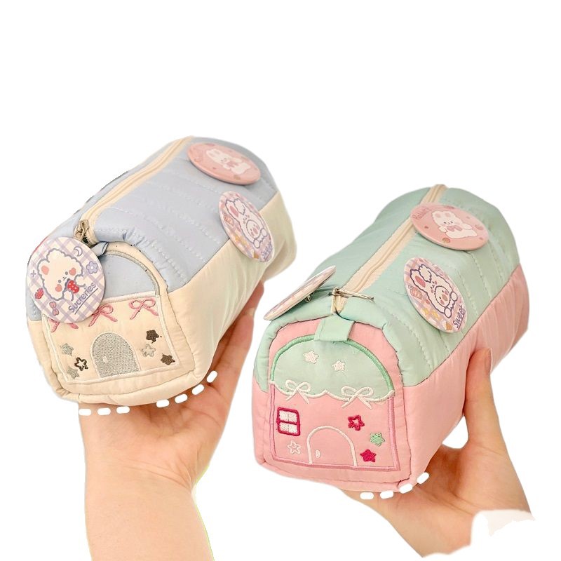 Xiaohongshu 인기 연필 가방 작은 집 디자인 귀여운 작은 신선한 편지지 상자 대용량 학생 틈새 보관 가방