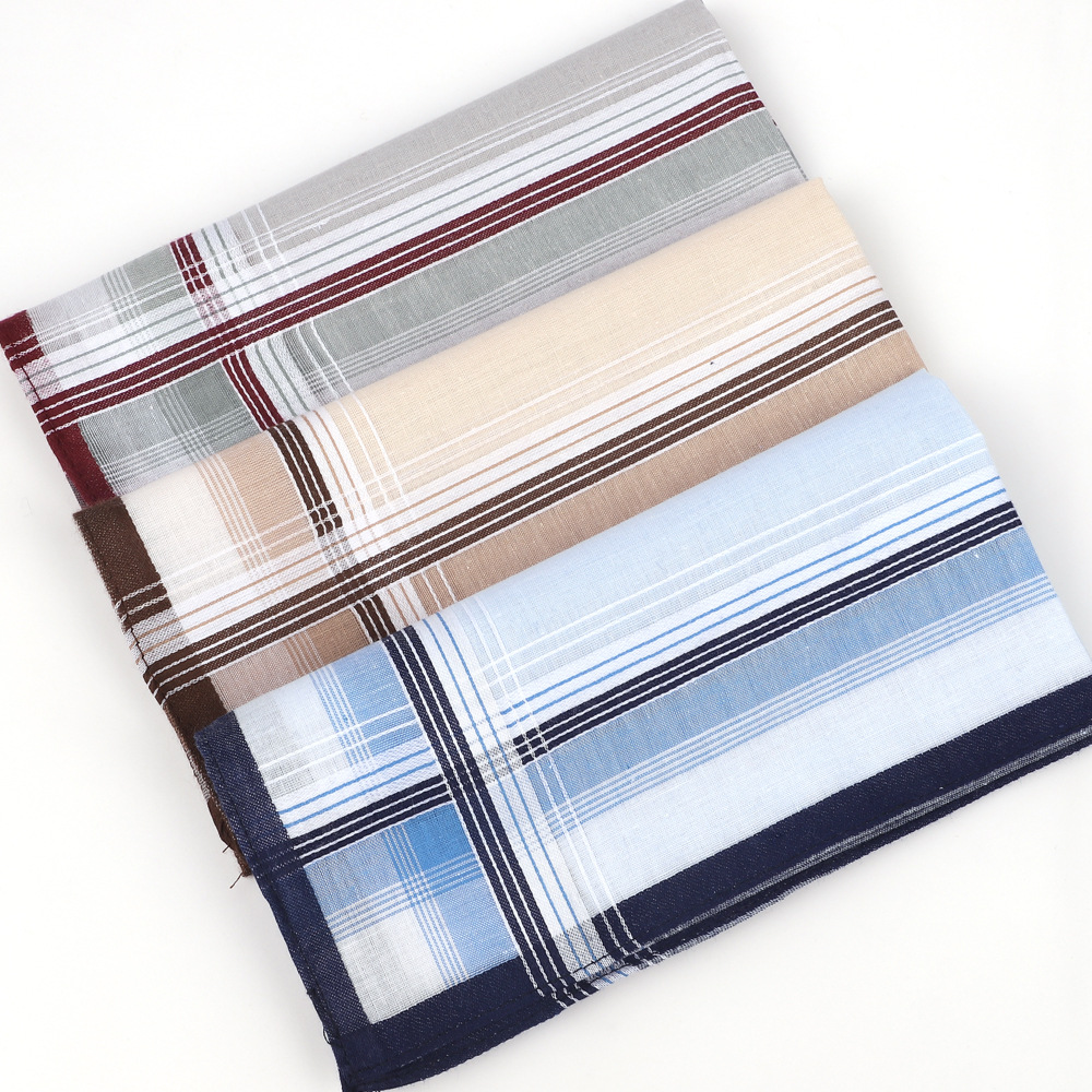 亚马逊爆款男士格子纯棉手帕礼服口袋巾品牌餐巾老式上海手绢40cm