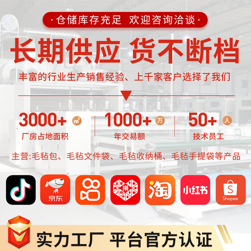 품질 기준 중국 섬유 산업 표준(FZ) 성분 및 함량 부직포 펠트 그램 무게 주문형 특정 용도 펠트 가방 품목 번호 라부부 펠트 핸드백 별명 펠트 핸드백 상표 첸롱 펠트 주요 다운스트림 플랫폼 다른 라이센스가 부여된 개인 상표가 있습니다. 없음 원산지 난공 사양 및 치수 34*27*11 색깔 블랙 라부부 가족사진 사양 모델 블랙 라부부 2; 30*25*10 -