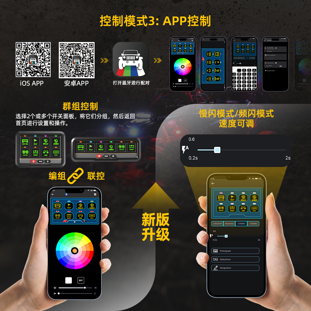 맞춤형 처리 예 상표 지우광 품목 번호 KZ-CP-8-WX-YK-앱 색상 분류 블랙 그레이 주요 다운스트림 플랫폼 독립 방송국 주요 판매지역 중동 국경 간 수출을 위한 독점 공급원인지 여부 예 오프로드 수정 스위치 패널 오프로드 차량 8방향 원격 제어 스위치 APP 블루투스 제어 오프로드 차량 스위치 패널 보조 빔 스위치 패널 -