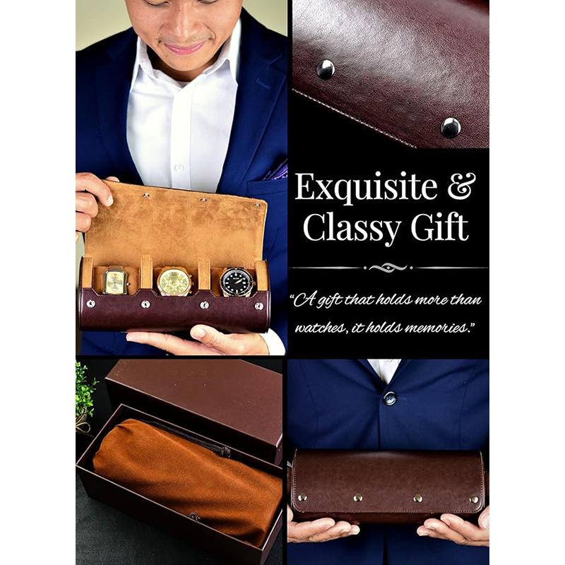 2025 핫 스타일 시계 포장 상자 보관 및 봉제 3팩 PU 가죽 시계 가죽 상자 맞춤형 가죽 가방