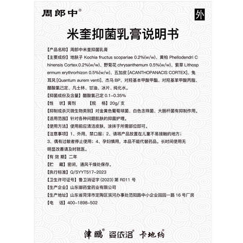 상표 저우 랑중 효능 다른 브랜드 유형 OEM 수입할지 말지 아니요 품목 번호 미쿠이 라이센스가 부여된 개인 상표가 있습니다. 저우 랑중 색상 분류 저우 랑중 미쿠이 연고 생산 허가증 루웨이 샤오정자(2023) No.R011 -