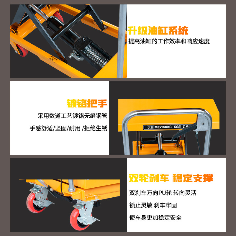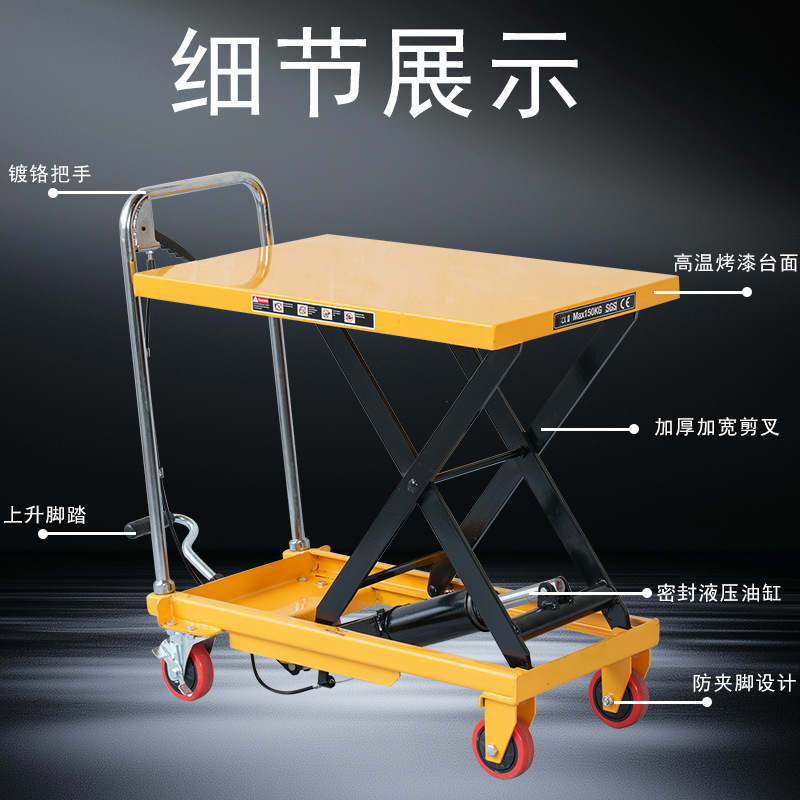 加力特手动升降平台车剪叉式液压升降机装卸搬运车小型升降台拖车 PT系列