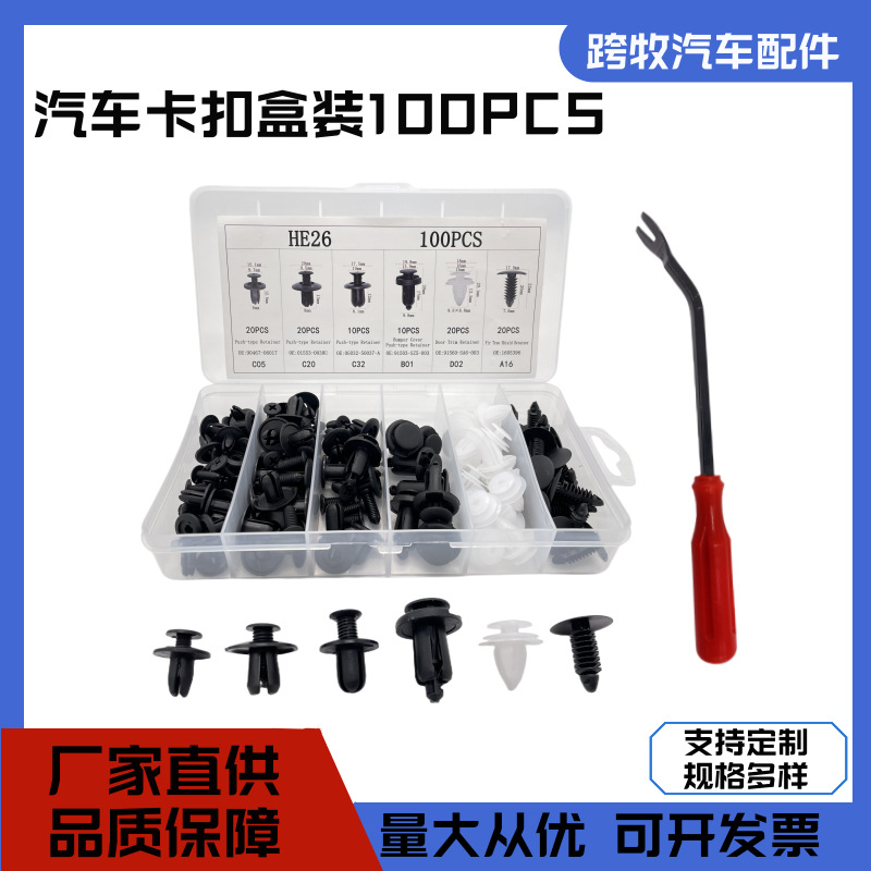 新品热卖 100PCS盒装汽车卡扣套装 车门内衬塑料尼绒固定卡子월 판매량 3483개재구매율 100%825원 * 수입시 예상 단가2.75元