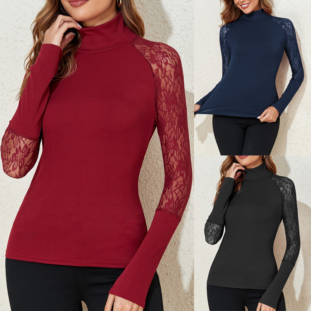 欧美高领长袖t恤亚马逊temu爆款女装纯色半高领蕾丝拼接性感上衣월 판매량 3개재구매율 0%9,975원 * 수입시 예상 단가35.00元33.25元