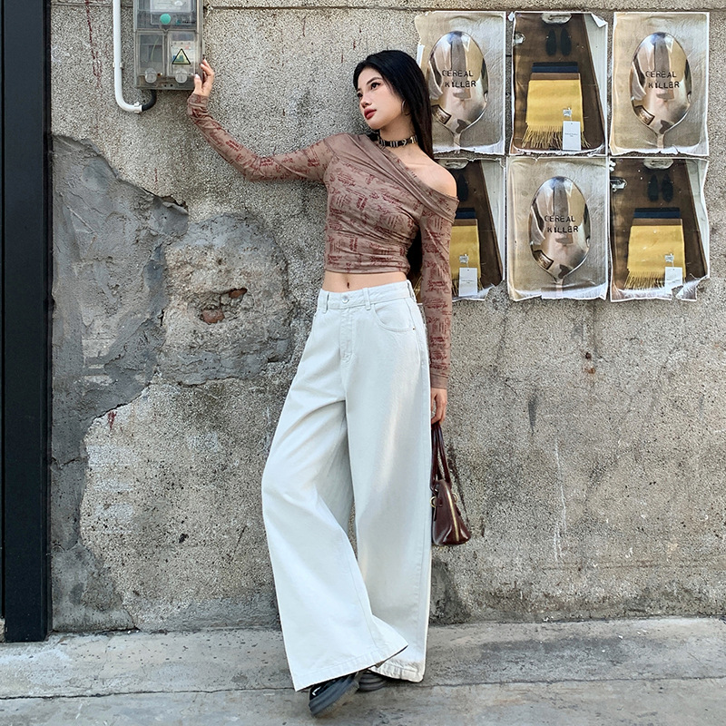 渣渣灰色爆款2025年春季宽松阔腿牛仔裤女高腰显瘦米白直筒拖地裤월 판매량 12개재구매율 0%20,700원 * 수입시 예상 단가69.00元