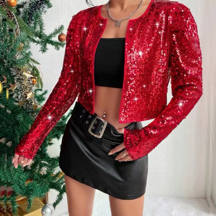 女装2023春季欧美亚马逊欧美跨境爆款潮人摇滚风圆领短款亮片外套월 판매량 188개재구매율 50%10,200원 * 수입시 예상 단가34.00元