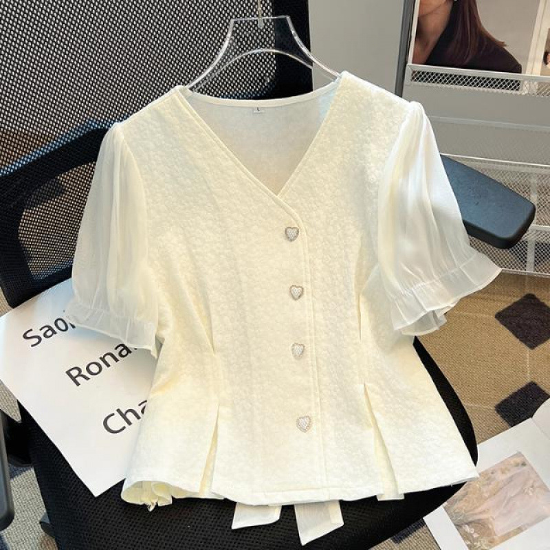 短袖雪纺V领衬衫女新款夏季爆款洋气独特别致高级感法式收腰上衣월 판매량 4개재구매율 0%16,338원 * 수입시 예상 단가54.46元