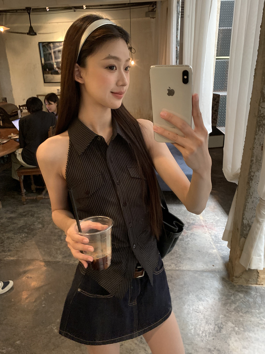 条纹衬衫女2025新款爆款法式上衣漂亮露背收腰黑色无袖衬衫월 판매량 0개재구매율 0%7,500원 * 수입시 예상 단가25.00元