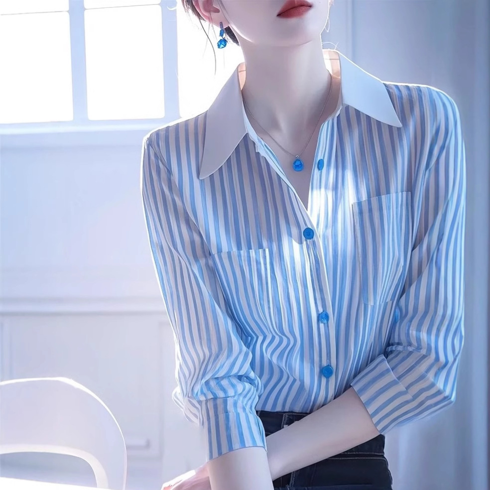 今年爆款独特超好看蓝色条纹衬衫女2025早春新款法式气质长袖衬衣월 판매량 42개재구매율 0%20,700원 * 수입시 예상 단가69.00元