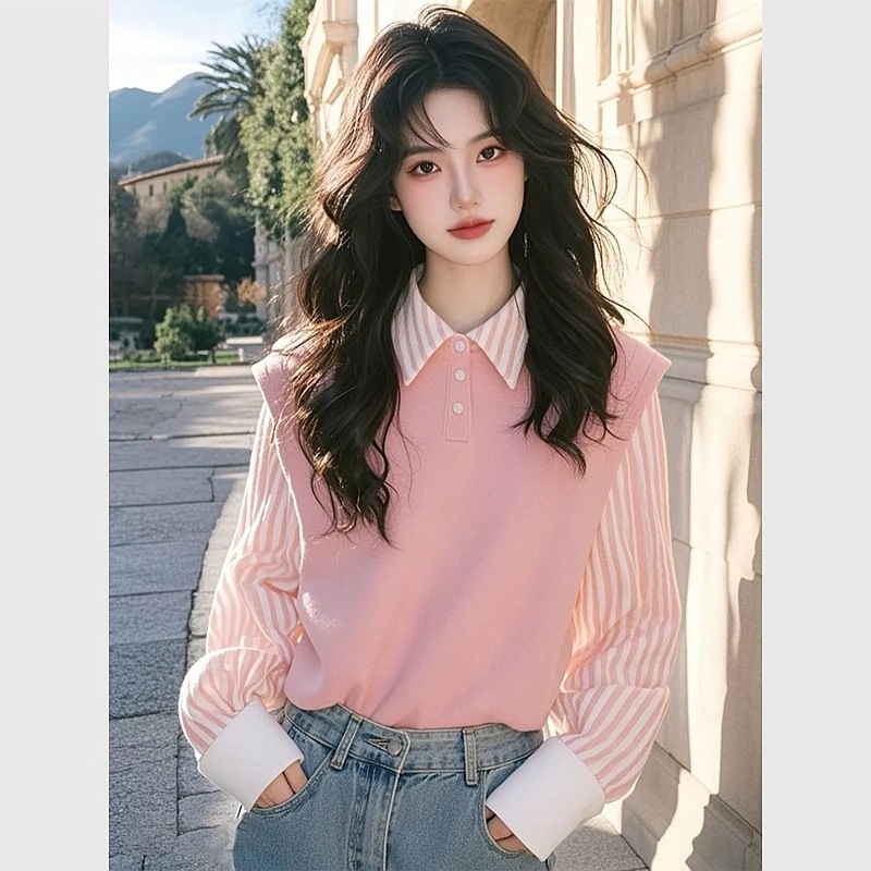 今年流行爆款超好看独特漂亮洋气减龄设计感粉色条纹拼接polo衫春월 판매량 11개재구매율 0%16,815원 * 수입시 예상 단가59.00元56.05元