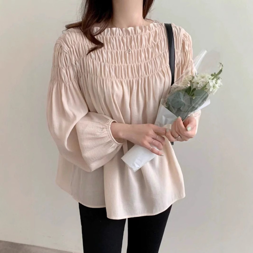 东南亚跨境爆款 一字领褶皱设计衬衫월 판매량 250개재구매율 25%8,400원 * 수입시 예상 단가28.00元
