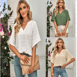 欧美跨境女装短袖上衣夏季新款亚马逊爆款休闲宽松V领毛球女上衣월 판매량 104개재구매율 37%9,000원 * 수입시 예상 단가30.00元