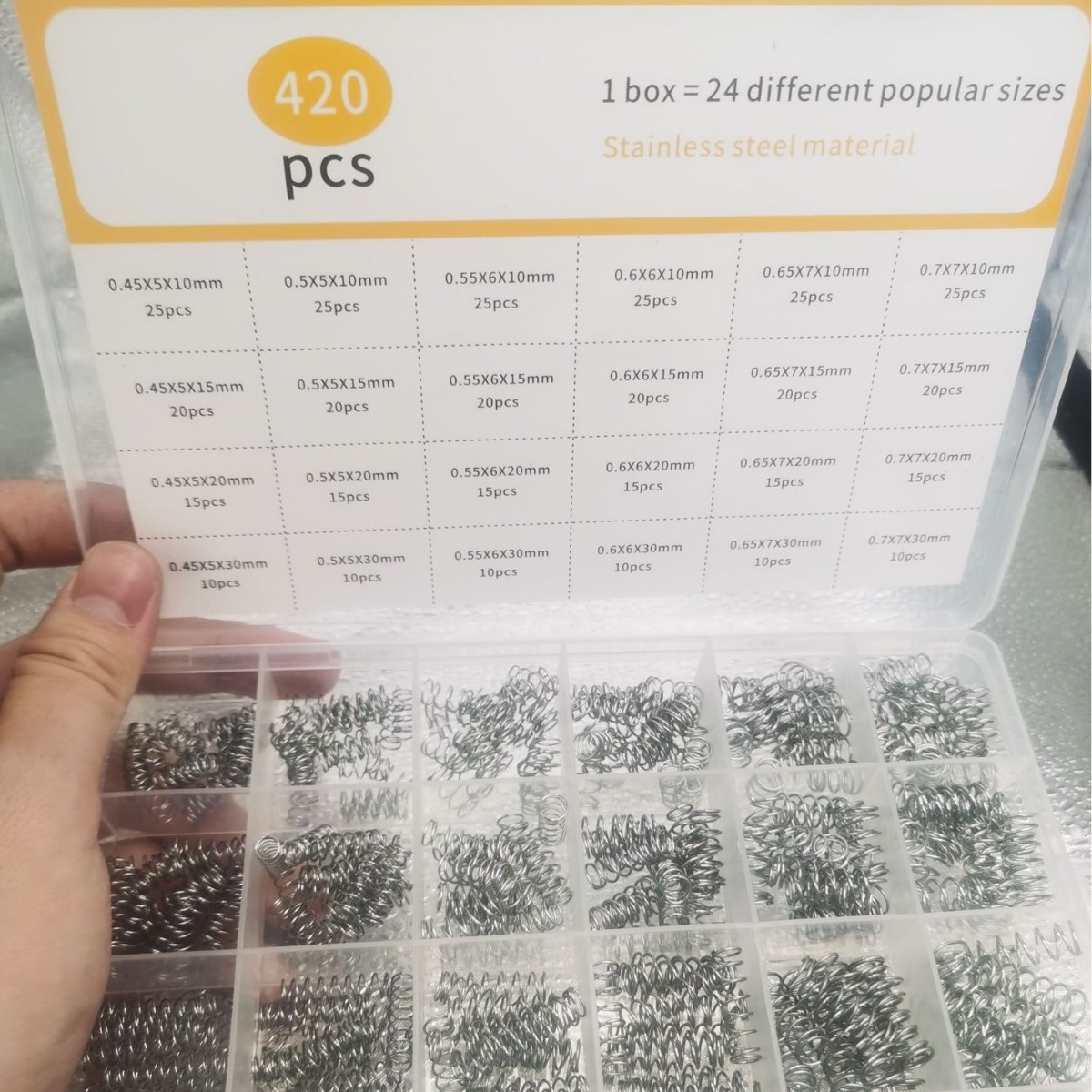 跨境420pcs/盒压缩弹簧组合套装24种大小弹簧热卖款套装出厂价월 판매량 0개재구매율 0%6,600원 * 수입시 예상 단가22.00元